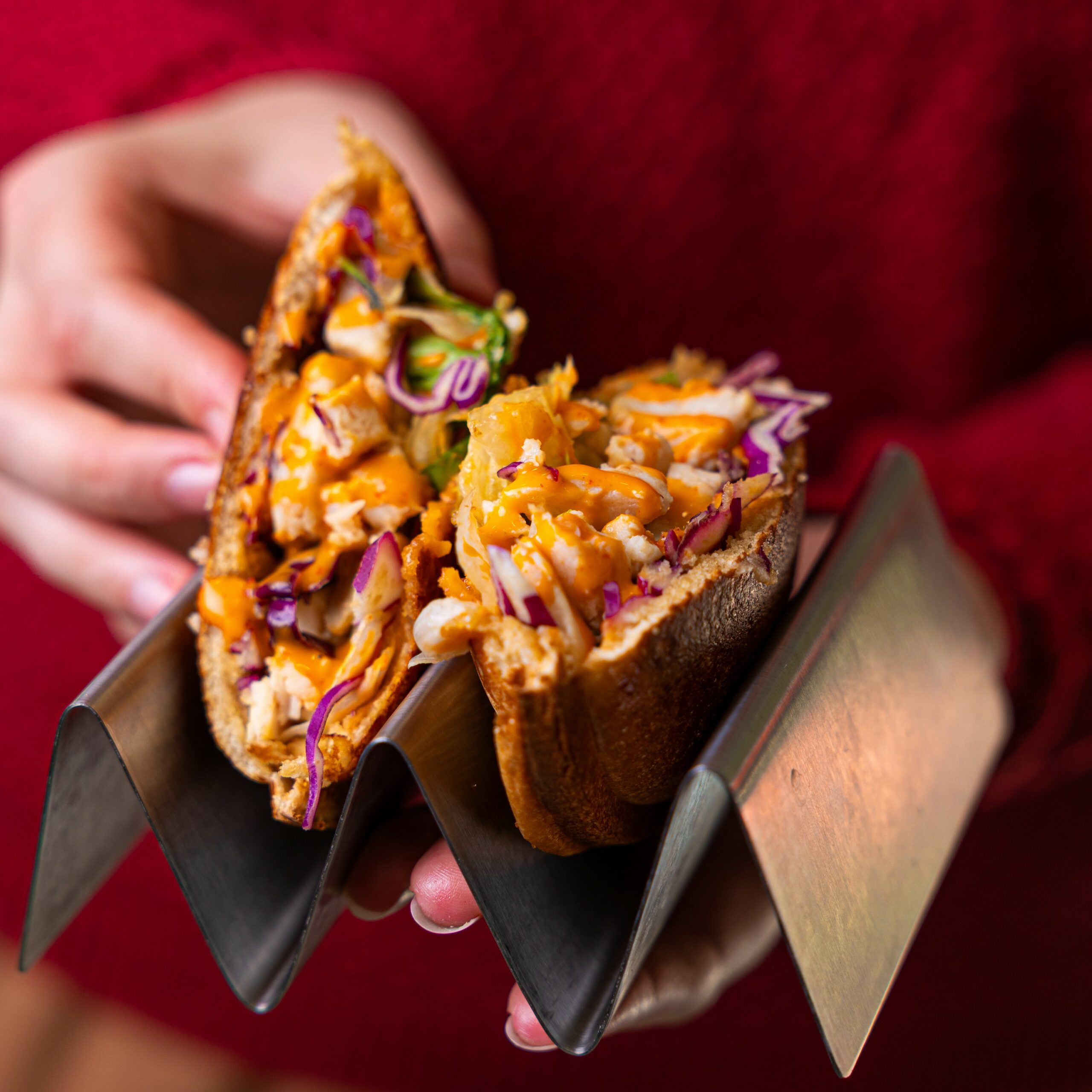 Avec les MoonâBomb, nos sandwichs chauds et fondants en forme de soucoupe, on revisite la street-food Ă notre maniĂšre : croustillant dehors, fondant dedans, et toujours plein de saveurs.